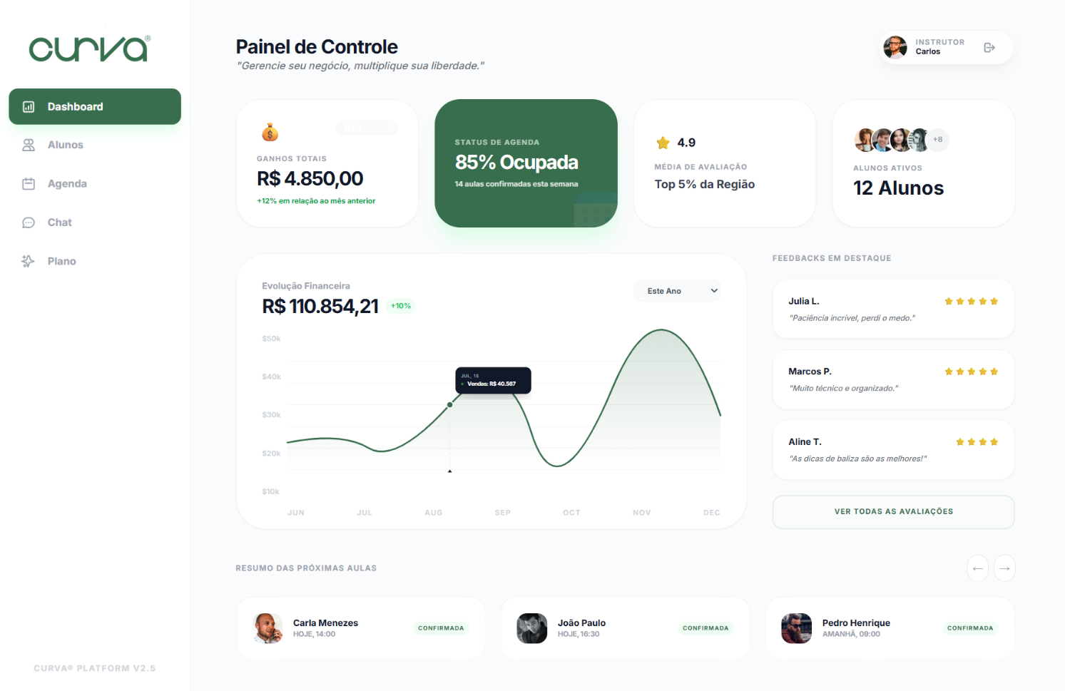 A curva® conecta alunos e instrutores de direção de forma moderna, transparente e eficiente. Agende aulas, gerencie horários e aprenda a dirigir com segurança.
